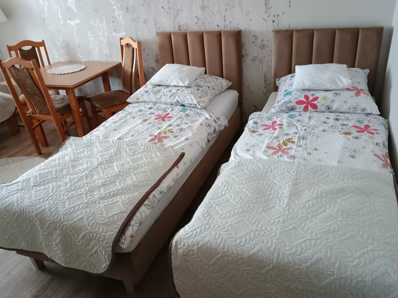Zapewniamy pokoje z łazienkami 2, 3, 4 osobowe oraz rodzinny apartament typu suite (od czerwca do września).