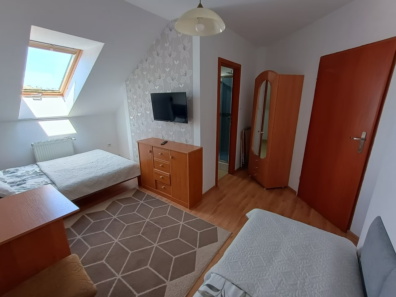 Zapewniamy pokoje z łazienkami 2, 3, 4 osobowe oraz rodzinny apartament typu suite (od czerwca do września).